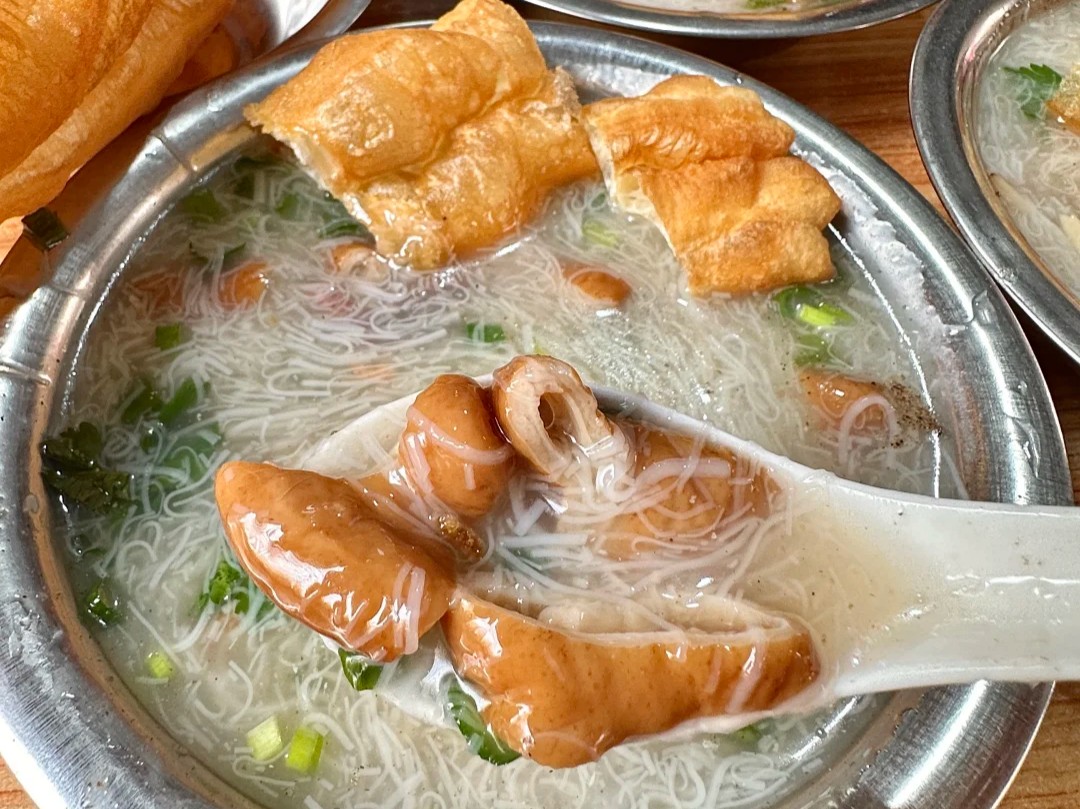清晨7-9点,用一碗古早味唤醒味蕾。往巷子深处找一家本地小店,一碗面线糊绵密顺滑,撒上虾皮、葱花和胡椒粉,鲜而不腻,搭配一条现榨油条,开启元气满满的一天,这也是本地人最爱的早餐搭配。