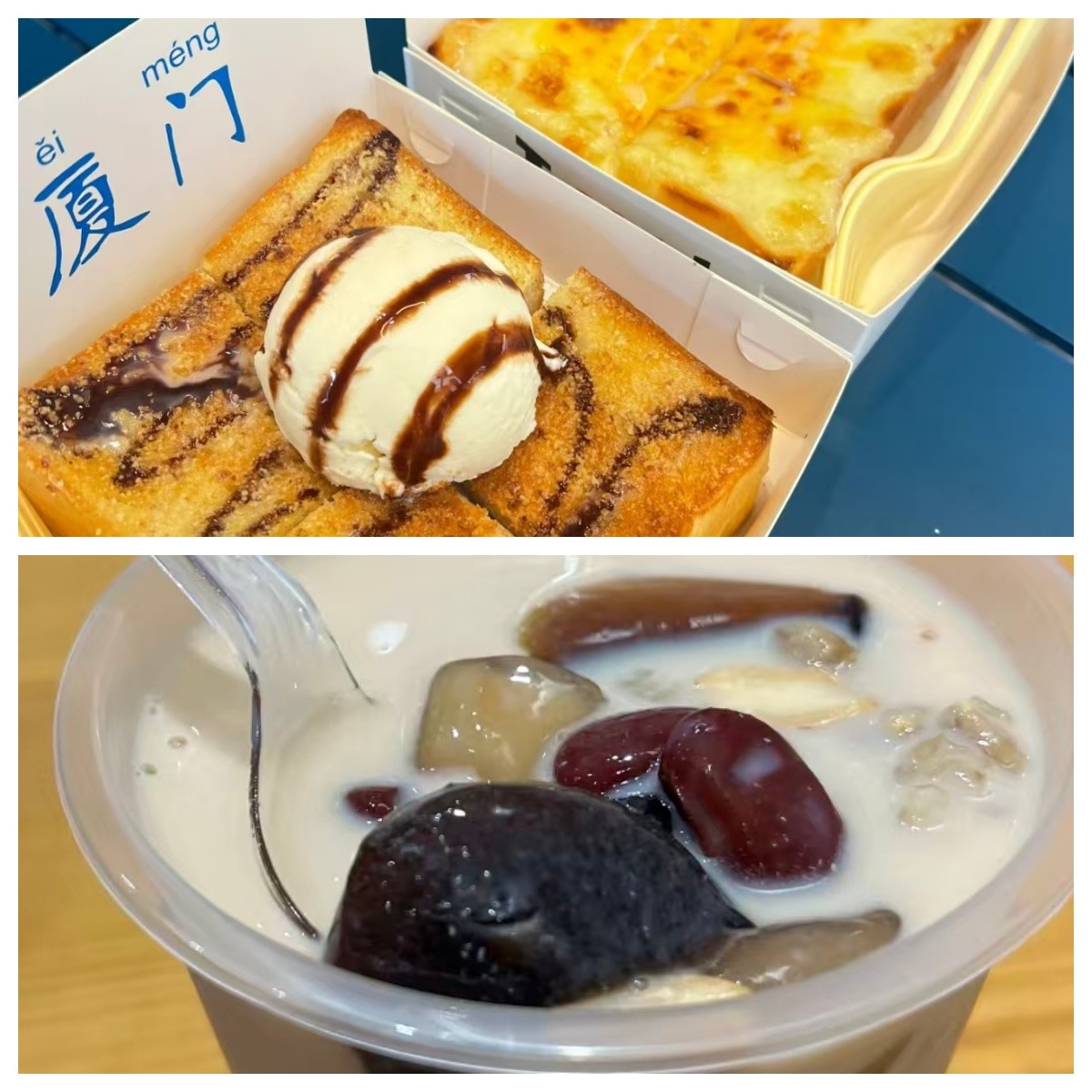 午后15-17点,用甜品缓解逛吃疲惫。阿信厚吐司的香草冰淇淋吐司,松软吐司夹着冰凉冰淇淋,甜而不腻;渴了就来一杯八婆婆烧仙草,团购不到二十就能拥有满满一杯,蜂蜜底清爽解腻,料足味正,是闽南人从小喝到大的味道。
