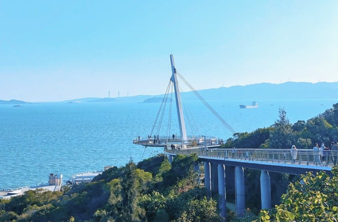 继续上行,就能抵达林海线的标志性建筑——盼归塔。这座形似风帆的白色建筑,伫立在山海之间,设计感十足,登上塔顶,视野更为开阔,270°无敌观海视角,能直接望向金门列岛,运气好的话,还能看见海雾中的夕光,落日沉入海平线的瞬间,光线在塔顶轻轻颤动,满是温柔与诗意。